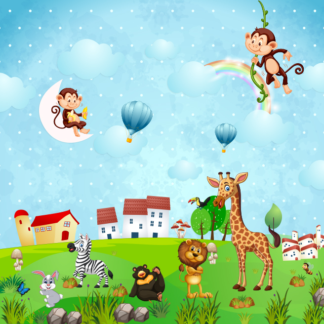 Be the first to review “Jungle animals on a blue cloudy sky”