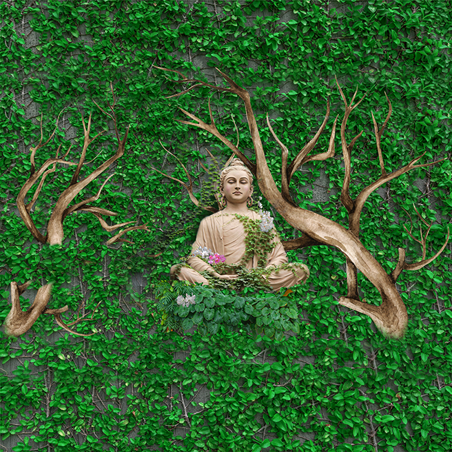 Lord buddha praying on a natural framework