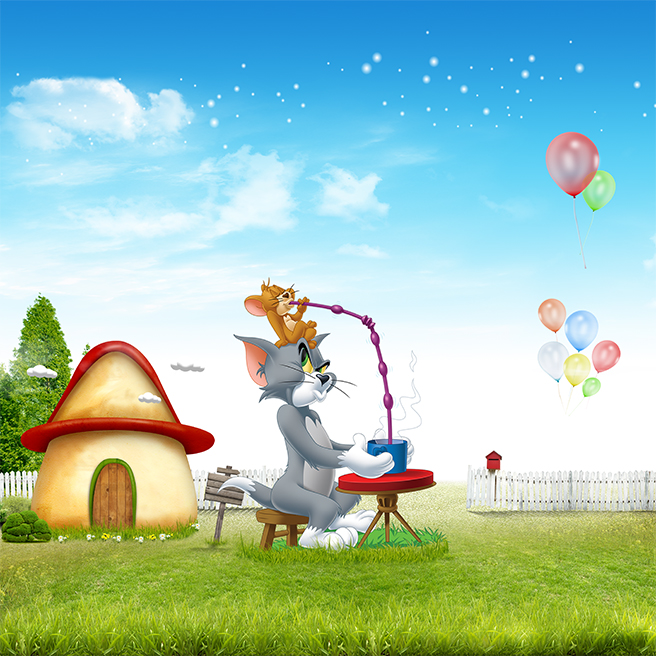 Tom and jerry sipping tea in a garden
